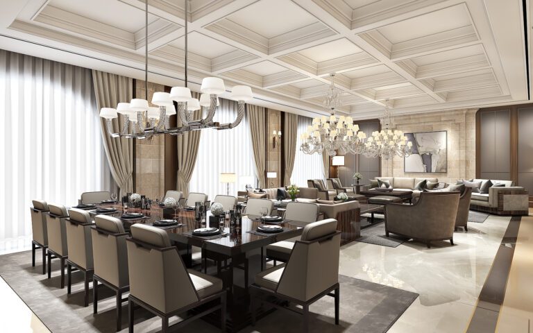 This project embodies the art of placemaking, seamlessly blending tranquillity and elegance to create intimate spaces within the home. From the bold coffered ceiling to the comforting warmth of dark oak and soft furnishings, every detail is thoughtfully designed to bring the project alive.