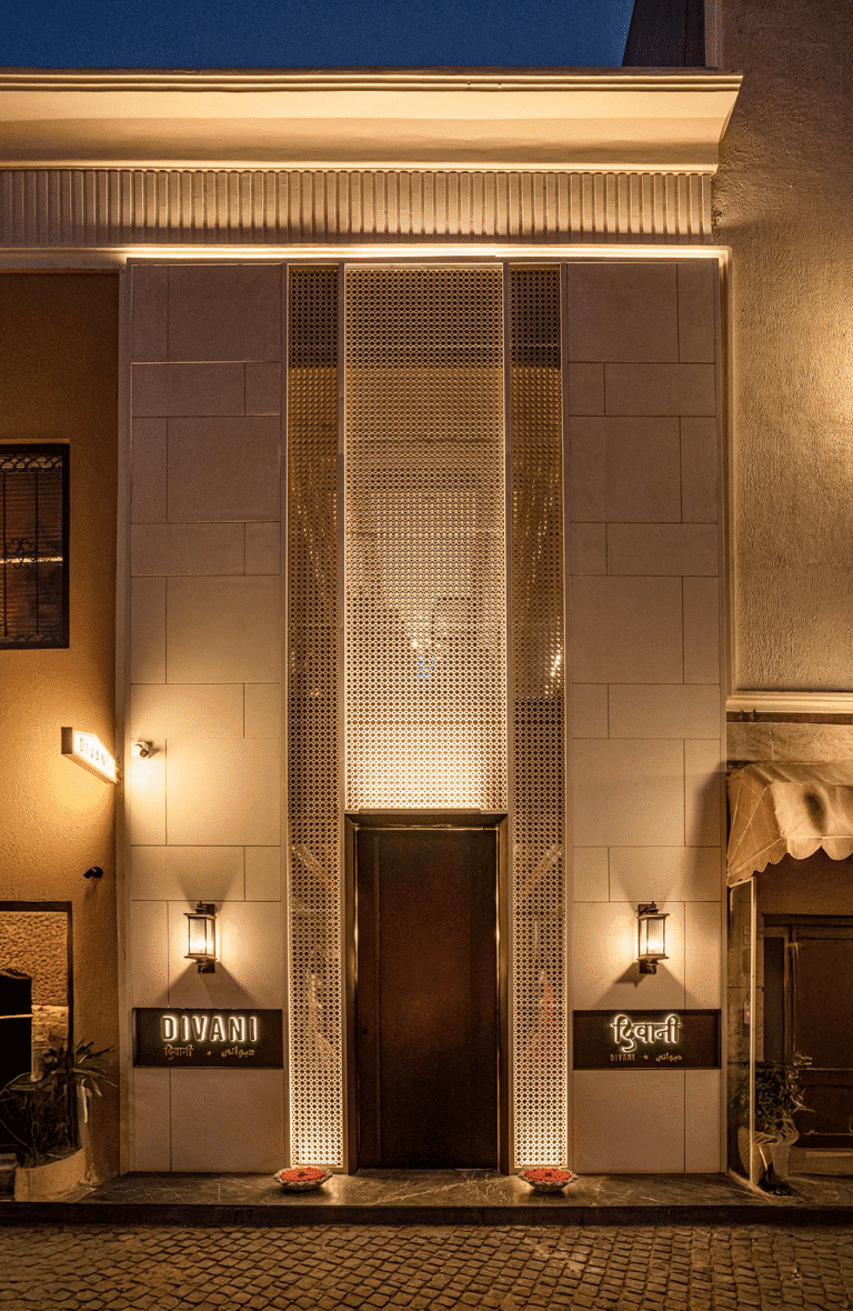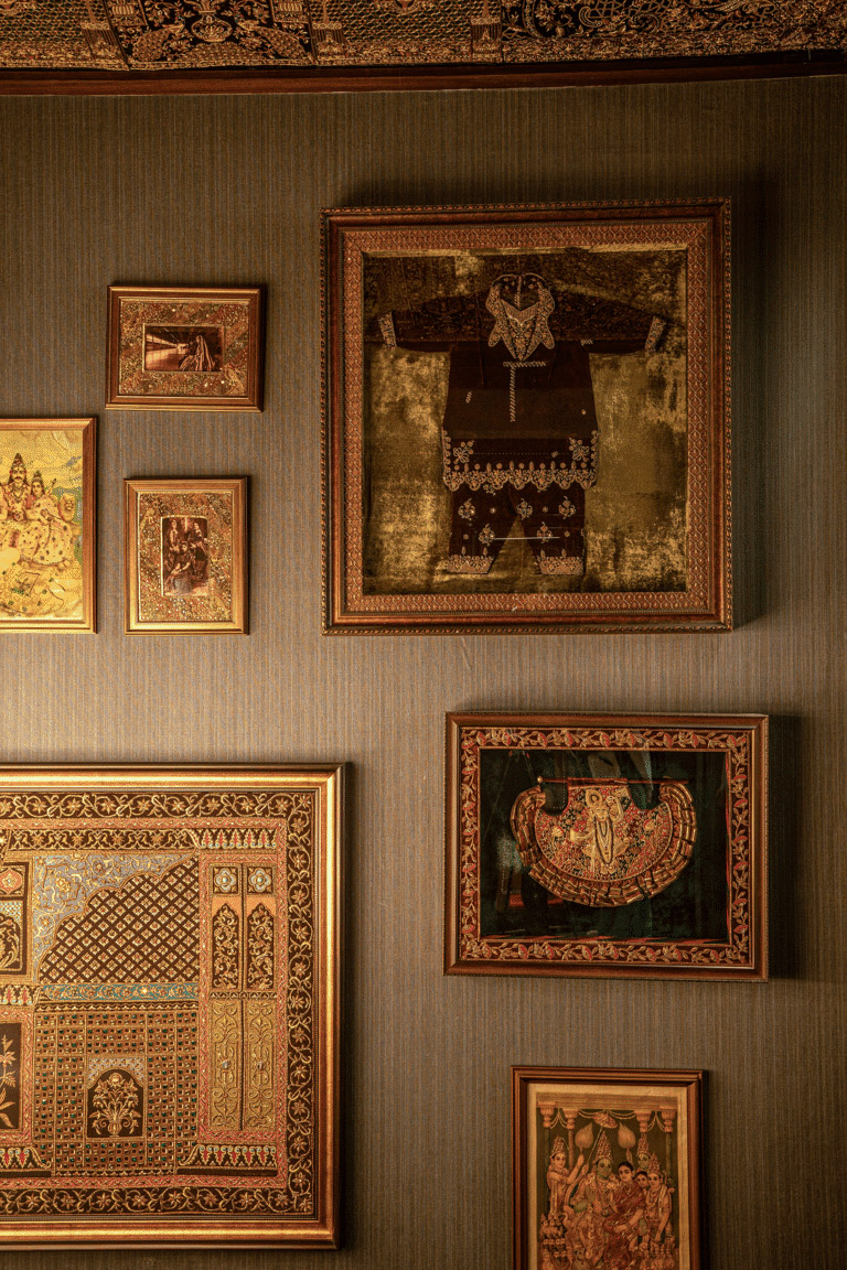 The layout unfolds as a series of choreographed spaces anchored by a dramatic central atrium, where natural light is filtered through fabric-draped ceilings embroidered with semi-precious stones. Mughal-inspired niches, aged wood, brass accents, and frescoed walls recall palace architecture, reinterpreted with modern sophistication.