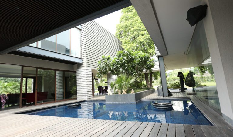 Clean, linear aesthetics harmonise with natural materials, exuding sophistication and warmth. Carefully designed overhangs and terraces not only provide privacy but also encourage sustainable living by optimizing shading and ventilation. This residence redefines luxury by offering a serene escape where bold architectural statements meet an intimate connection with nature.