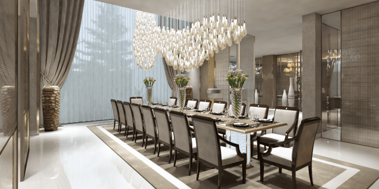 Materials and finishes further enhance the space’s identity. Glass, incorporated into lighting fixtures, creates sculptural statement pieces. These elements not only provide illumination but double as focal points of artistic expression, balancing the room’s bold proportions with delicate intricacy. Whether sleek and minimalist or ornate and timeless, these fixtures embody the fusion of functionality and aesthetics.