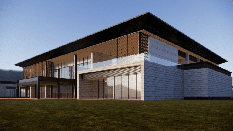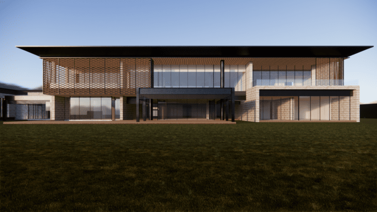 Minimalism defines the residence, not as an absence, but as an articulation of intent. Light-coloured stone meets the warmth of rich wooden textures, establishing a tactile dialogue between solidity and softness. Its horizontal form anchors it effortlessly into the landscape, while carefully framed voids invite nature inward. The residence does not impose; it integrates, creating a sanctuary of quiet sophistication.