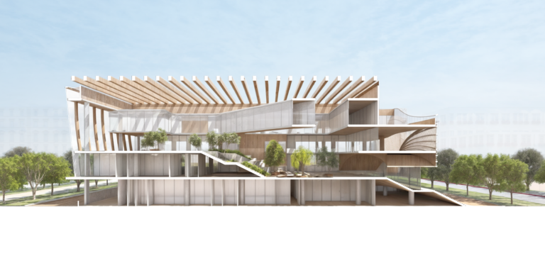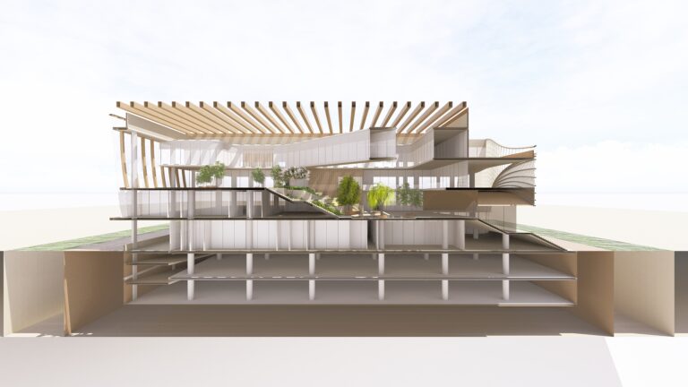 Parametric design informs every element of the project, using algorithms to craft adaptive geometries that respond to climate and light. This modern, data-driven approach ensures that the structure supports innovation and exists as a forward-thinking model of sustainable architecture.
