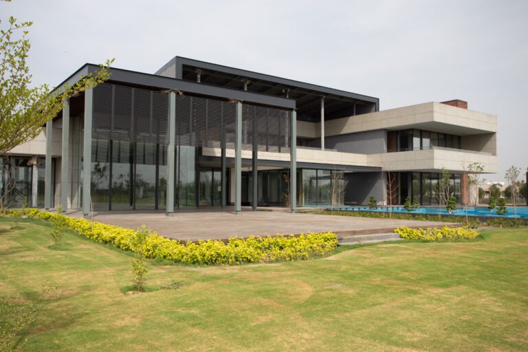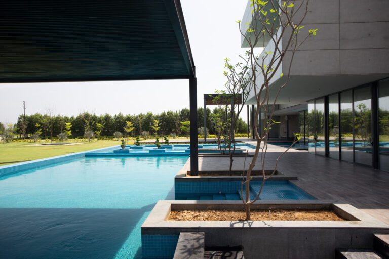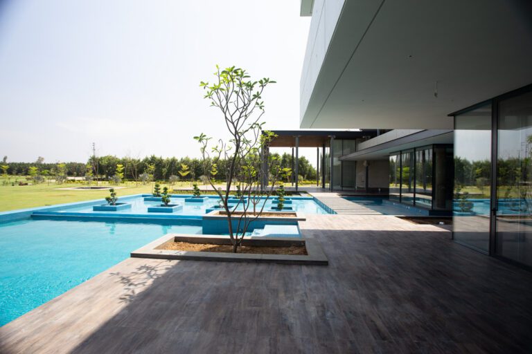 The residence finds its soul in the curated landscape that envelopes it. Lush greenery softens the solid architectural lines, allowing the balance of form and function to transform the house into more. Here, the design narrative is one of elegance, practicality, and harmony.