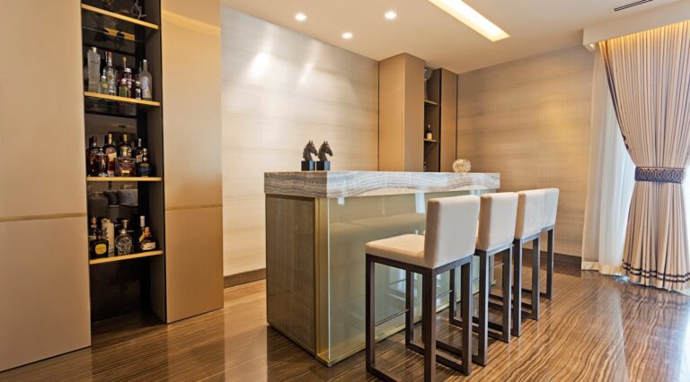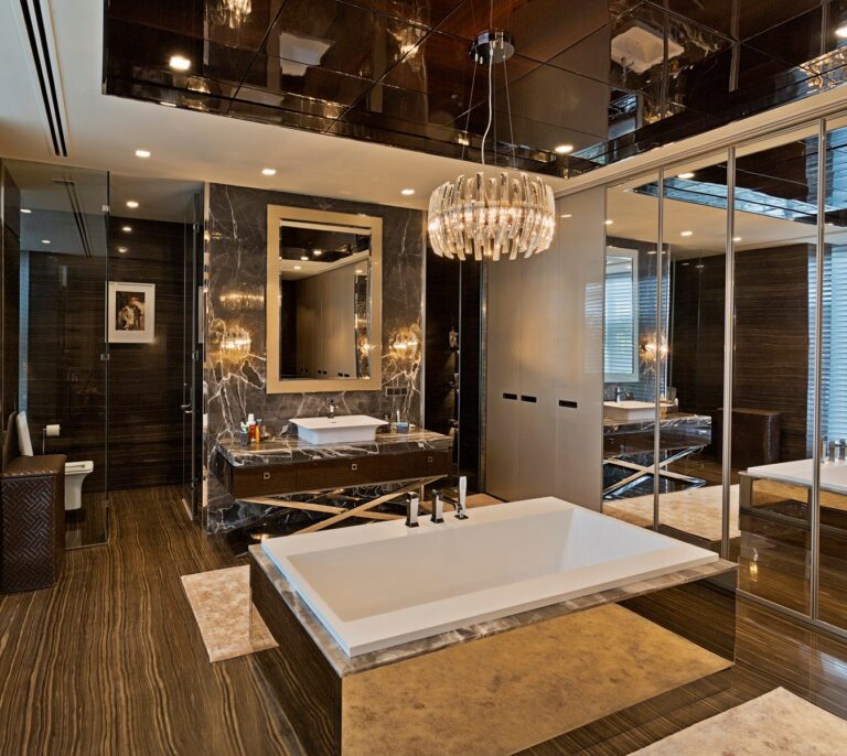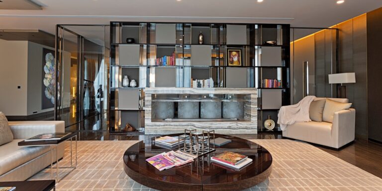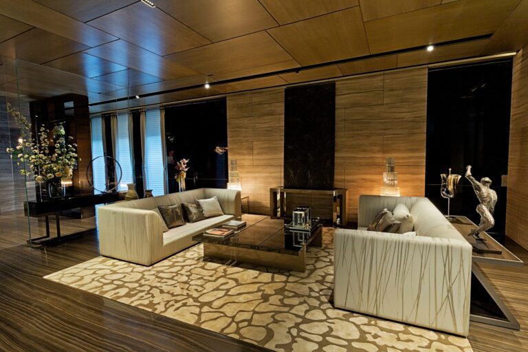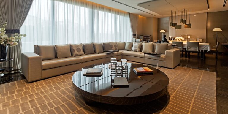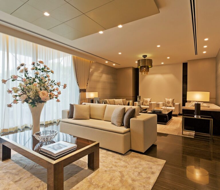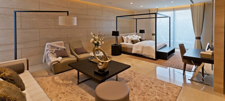 This luxurious residence radiates warmth and sophistication through its meticulous attention to architectural detail. A serene palette of beige tones defines the interiors, with plush furniture and soft textures creating an atmosphere of understated elegance. Warm, ambient lighting accentuates every space, casting a gentle glow that enhances comfort and intimacy.